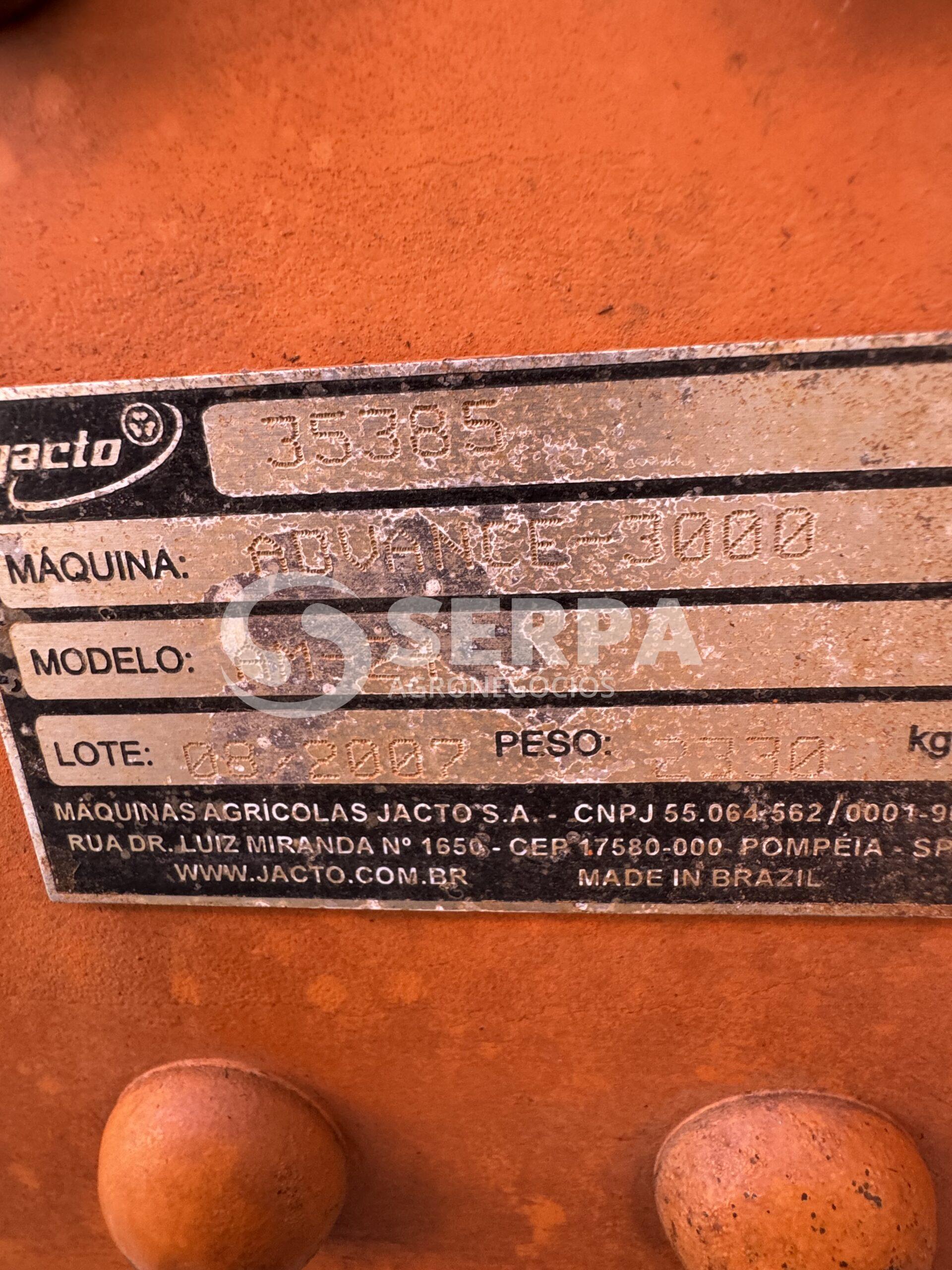MARCA: JACTO MODELO: AM-24 ANO: 2007 LITROS: 3000 BARRA: 24 MTS COMANDO ELETRO ELETRONICO DE AGUA PARA BARRA